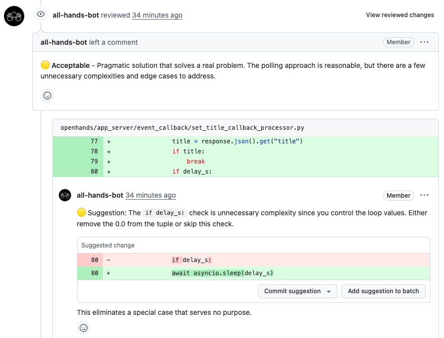 !The OpenHands PR review skill in action on GitHub