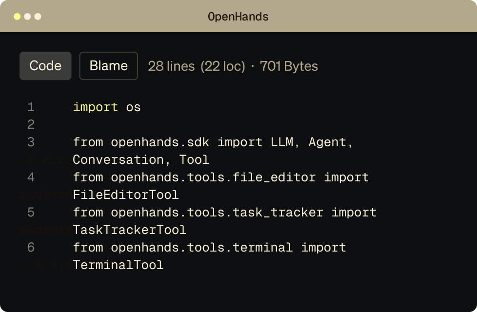 The OpenHands SDK lets teams create specialized agents, integrate internal tools, and orchestrate complex workflows programmatically.
