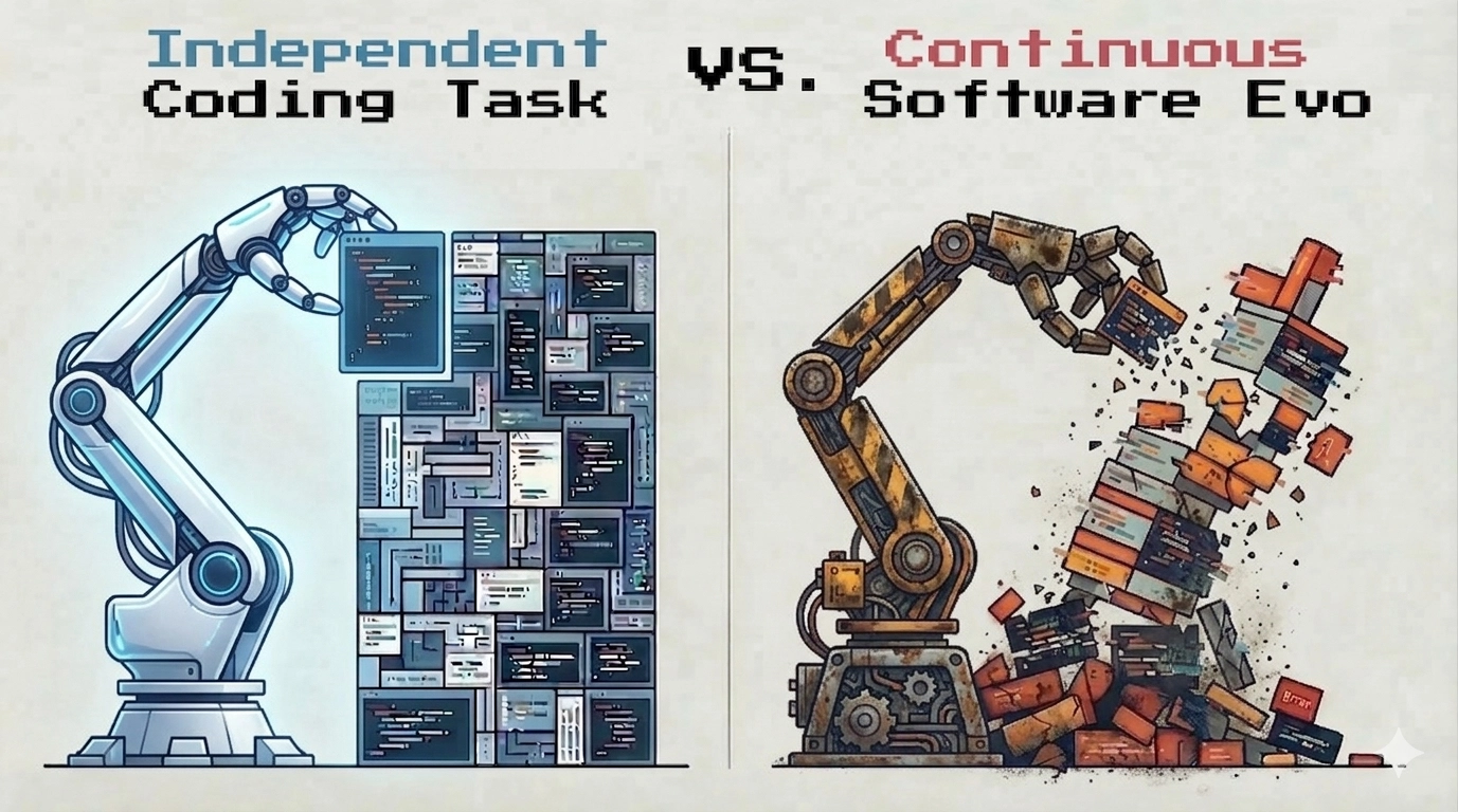 This framing matters because the hard part of real software evolution is often not adding new code. It is keeping the existing system from breaking while the codebase gets more complicated.