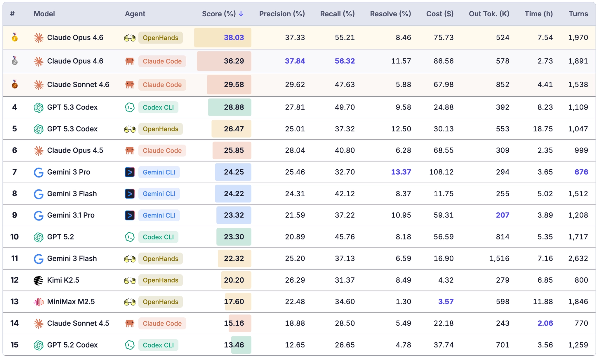 - Precision: how much existing functionality the agent preserves without introducing regressions