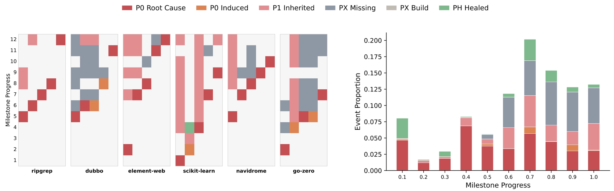 To understand how failures compound over time, the benchmark introduces an error chain analysis that tracks how problems propagate across milestones.